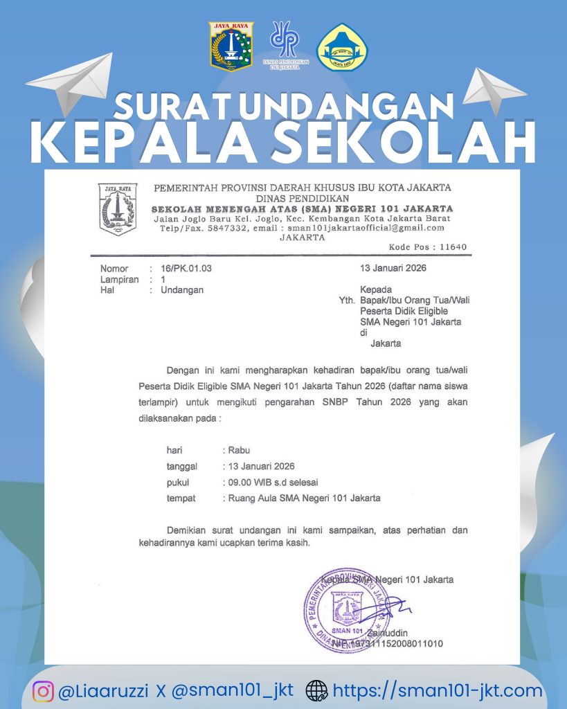 Apa pun hasil yang akan diperoleh nanti, SMA Negeri 101 Jakarta bangga kepada peserta didik yang berani berproses, berusaha, dan bertanggung jawab atas pilihannya, bukan sekadar berharap pada hasil akhir.